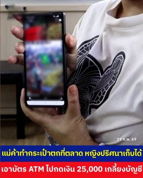 แม่ค้าทำกระเป๋าตกที่ตลาด หญิงปริศนาเก็บได้ เอาบัตรเอทีเอ็มไปกดเงิน 25,000 เกลี้ยงบัญชี