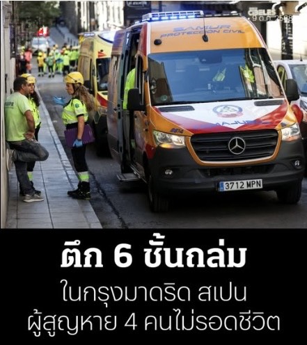 สลด ตึก 6 ชั้นถล่มบางส่วนในกรุงมาดริด ผู้สูญหาย 4 คนถูกพบเป็นศพ