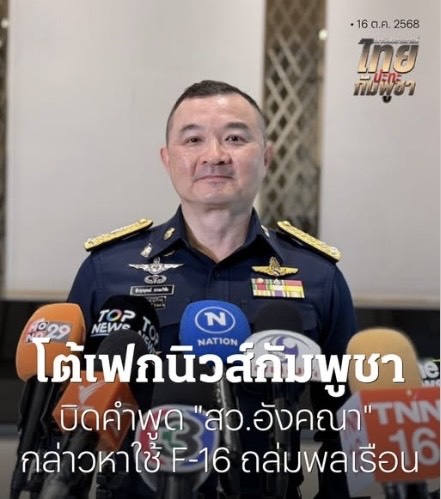 โฆษก ทอ. โต้เฟกนิวส์กัมพูชาบิดเบือนคำพูด "สว.อังคณา" กล่าวหาใช้ F-16 ถล่มพลเรือน