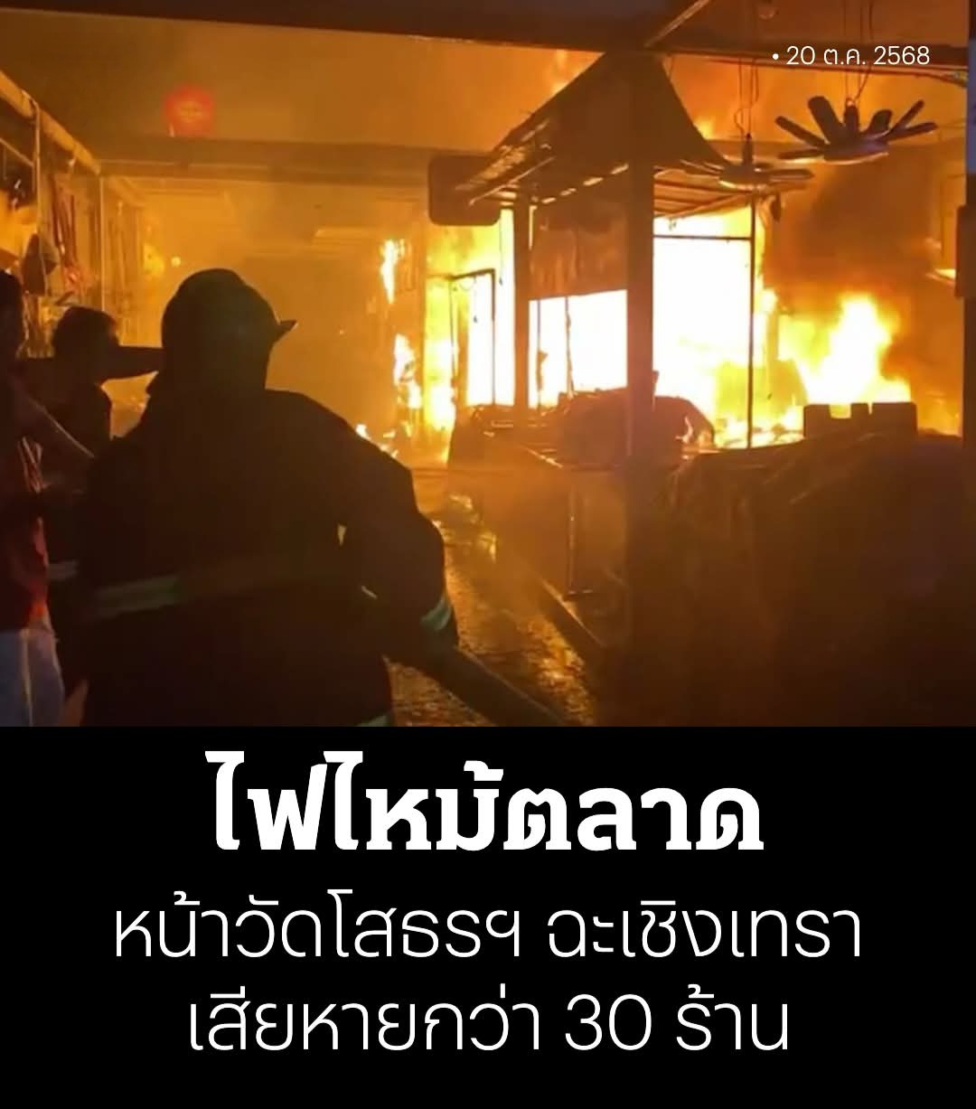 เกิดเหตุเพลิงไหม้ภายในตลาดขายของฝาก หน้าวัดโสธรวรารามวรวิหาร จ.ฉะเชิงเทรา กลางดึก วอด 30 ร้าน