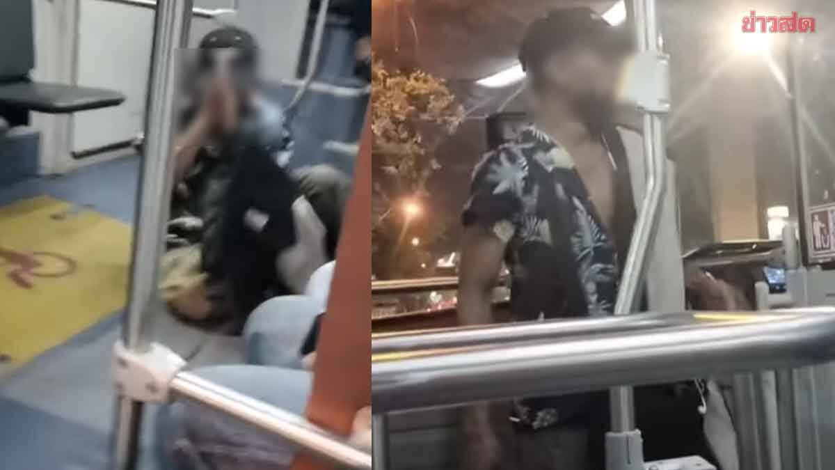 ชายโรคจิต ยกมือไหว้ท่วมหัว เจอสาวใจเด็ด กระโดดถีบ หลังเจอลวนลามบนรถเมล์ซ้ำ เป็นรอบที่2